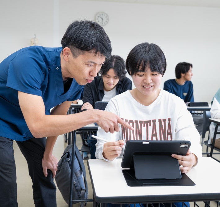 きめ細やかな指導をするため担任制を設け、学生一人ひとりの適性を探ります。学年が上がる毎に実践的な専門知識を身につけ、国家試験への準備を整えます。最終学年では、過去問題や模擬試験などで理解を深め、より本番を意識。教員による講義形式の個別対策で苦手科目なども万全にサポートします。