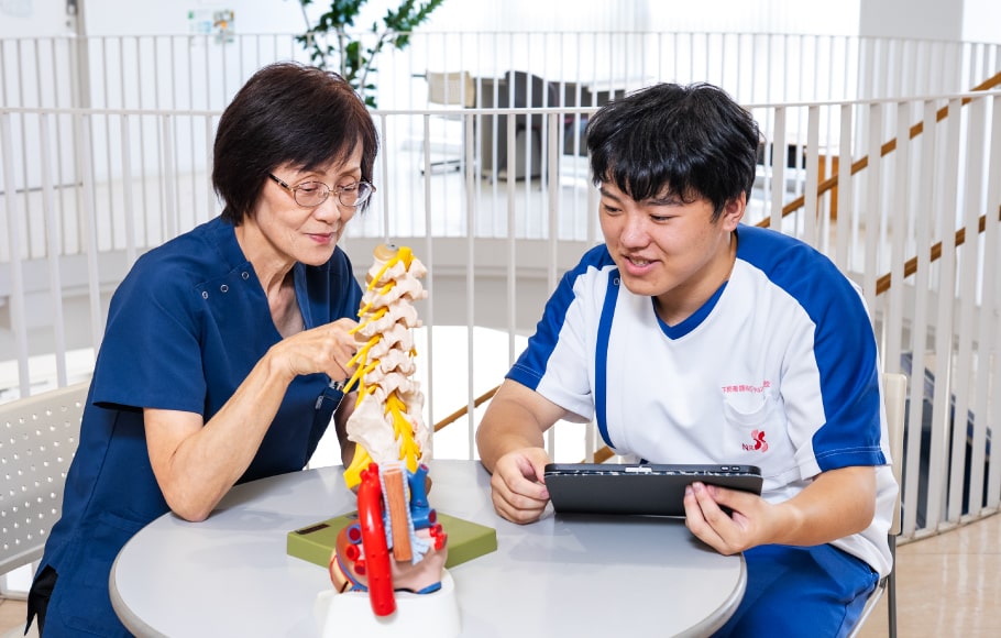 入学前より高校の基礎学力の維持と理学療法士・看護師になるために必要な内容を学習し、入学後も1年次より主体的な学習を実施しています。